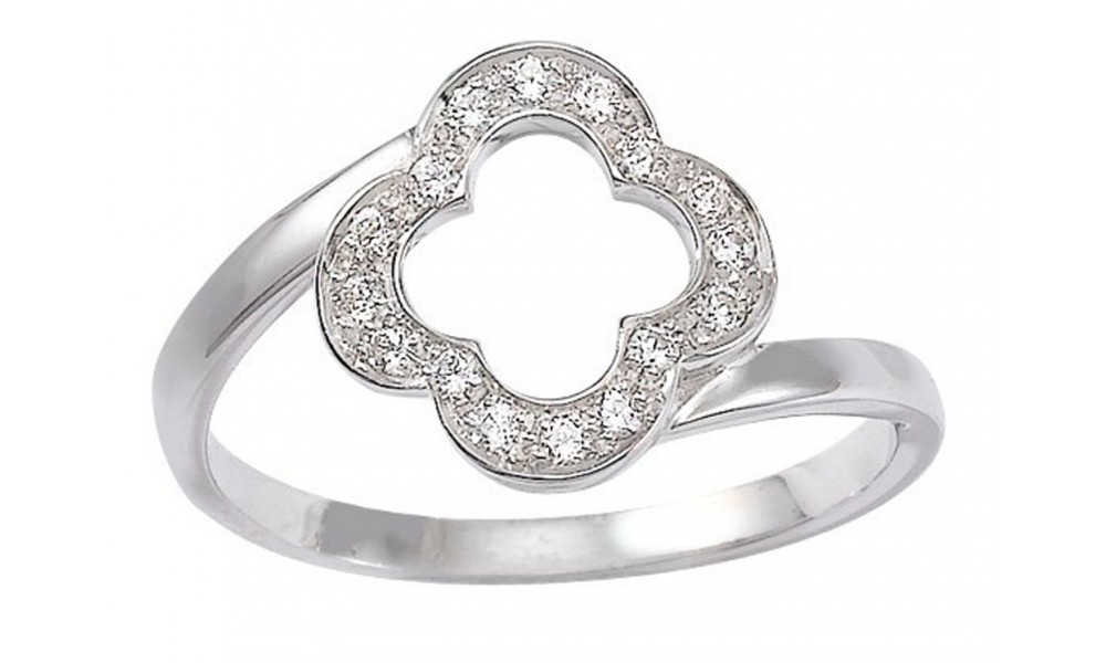 Très belle bague en OR Blanc avec un Trèfle sur le dessus, entièrement sertie de Diamants de 0,01ct.