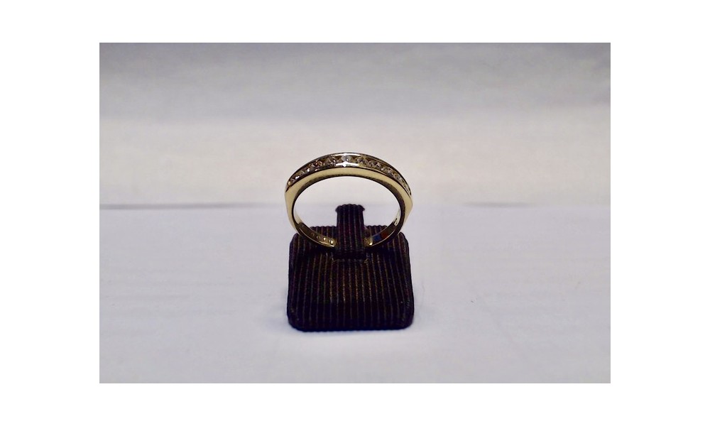 Magnifique Alliance en Or jaune 750 millièmes serti de 10 Diamants d'environ 0,025 centièmes. Les Diamants sont serti en "Rail" pour un meilleur maintient.