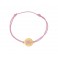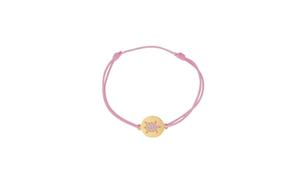 Magnifique bracelet avec un motif rond en OR Jaune sur lequel est représenté une Tortue en Acier Rose. Ce motif est associé à un bracelet Cordon en coton de couleur Rose. La longueur du bracelet s'ajuste à l'aide d'un noeud coulissant. Il pourra ainsi s'adapter à toutes les tailles de poignets.