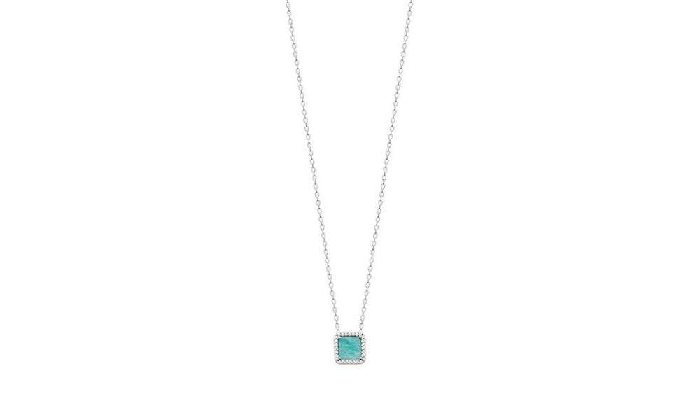 Magnifique collier en Argent 925 millièmes serti d'une Amazonite au centre entourée d'Oxydes de zirconium. Le collier mesure 45 centimètres de long et est monté avec une chaine maille Forçat.