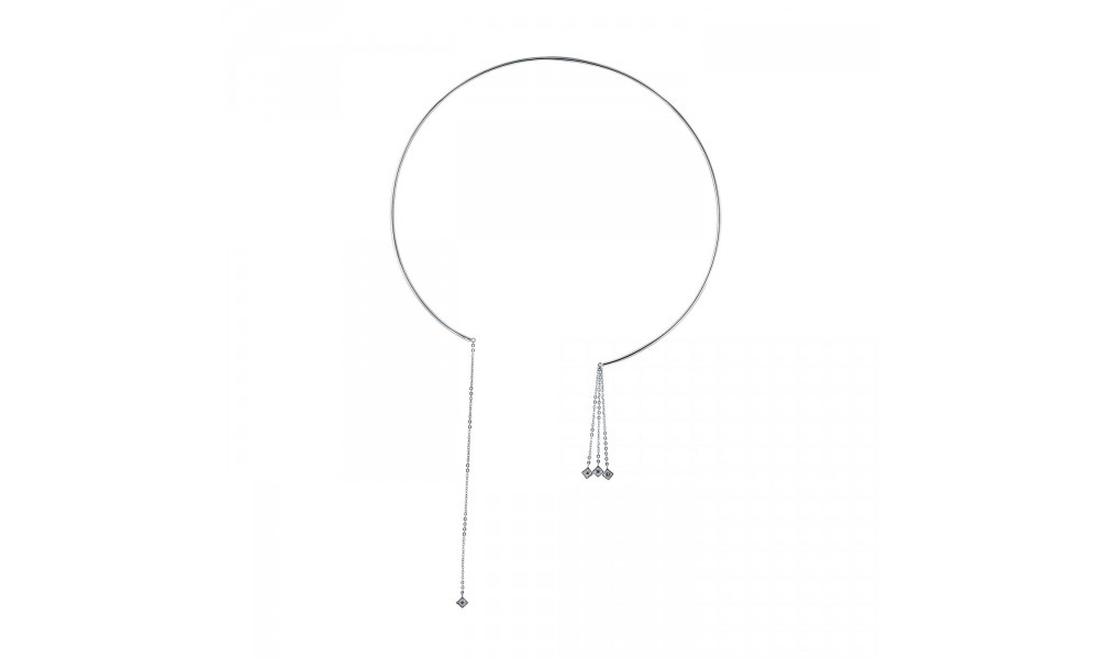 Votre bijouterie en ligne Or et façon vous propose ce très joli collier semi rigide coquet et plein de fantaisie. Confectionné en Argent Massif 925, son design original s'agrémente de charmantes chaines soutenant de petites breloques carrées serties d'Oxydes de Zirconium.
