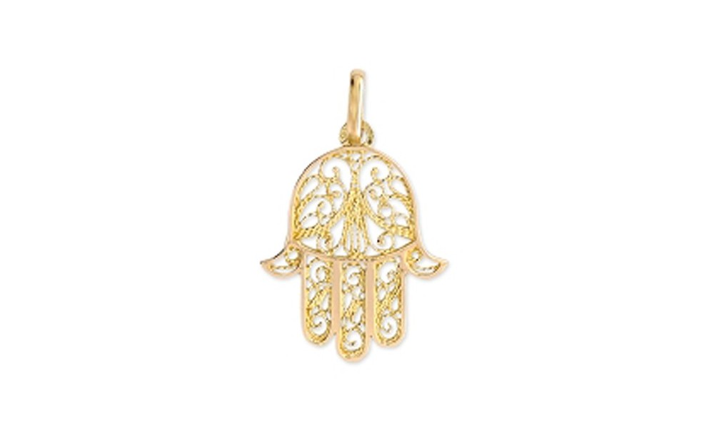 Maginfique pendentif en OR de la Main de Fatma avec un décor entièrement en motifs Filigranne sur le dessus.