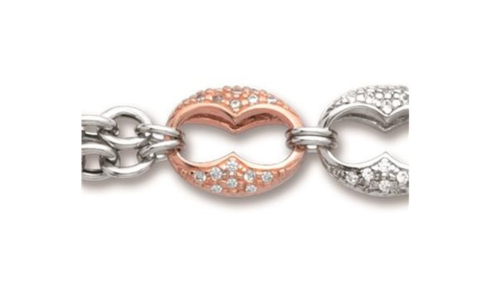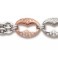 Très joli bracelet maille Fantaisie Ovale 2 rangs accompagnée de 3 motifs en forme de Grain de Café en Argent Massif Rhodié Rose, Blanc et Jaune entièrement sertis d'Oxydes de Zirconium. Ce bracelet moderne et original est founi avec un fermoir Mousqueton.