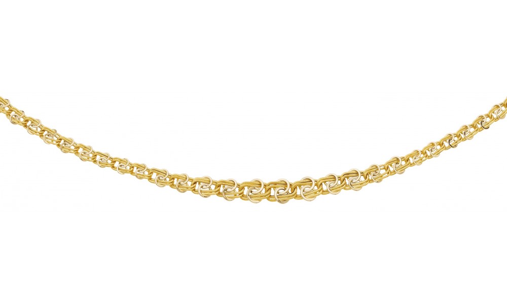 Collier en 2 ORS en chute. Maillons ovales doubles avec 2 anneaux en OR Blanc entrelacés.
