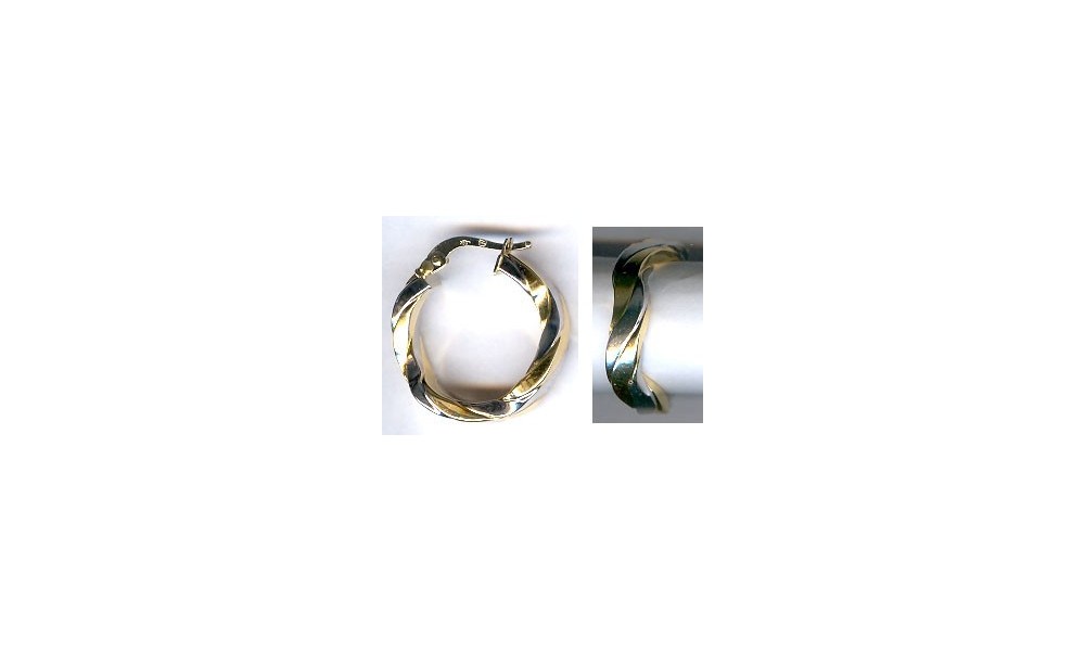 Paire de boucles d'oreilles Créoles en 2 ORS. Créoles en forme de vague, fil tressé. Largeur 4mm.