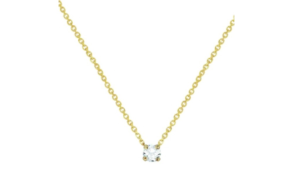 Collier "Solitaire" en OR et Oxyde de Zirconium serti 4 griffes. Le pendentif est fourni avec une chaine en OR maille forçat.