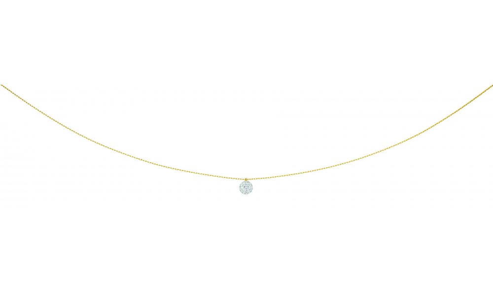 Collier en OR Jaune avec pendentif Boule serti entièrement d'Oxydes de Zirconium.
