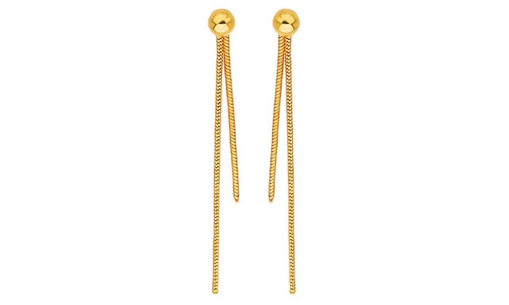 Paire de boucles d'oreilles pendantes en OR Jaune. 2 Pendants chaine maille serpentine diamantée. Fermoir "poussette".