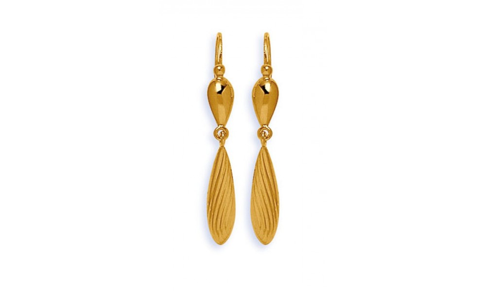 Superbe paire de boucles d'oreilles Pendantes en OR Jaune. Pendant en forme de "quille" strié. Système de fermoir "dormeuse".