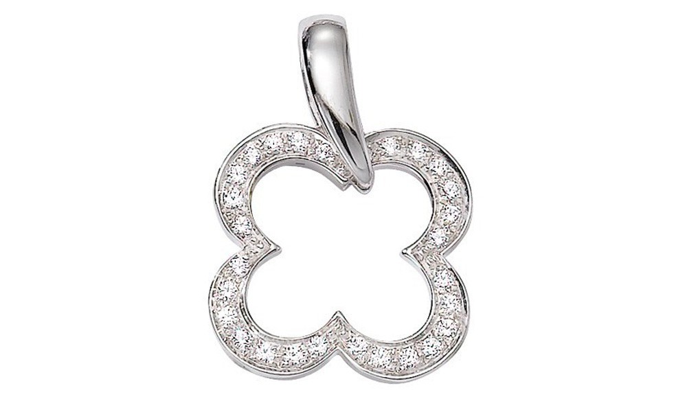Très joli pendentif Trèfle en OR Blanc et Diamant. Le Trèfle est entièrement serti de Diamants.