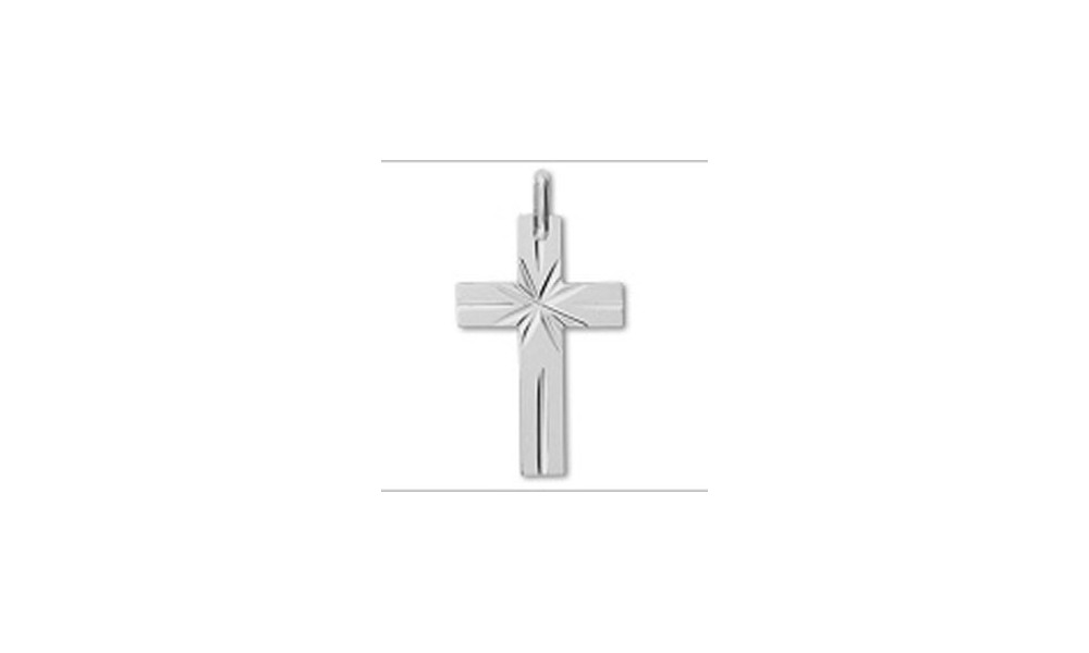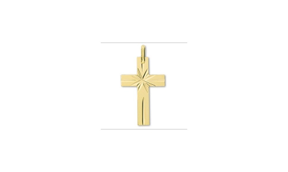 Croix en OR avec motif ciselé étoile au centre. Ciselure aux extrémités de chaque branche.