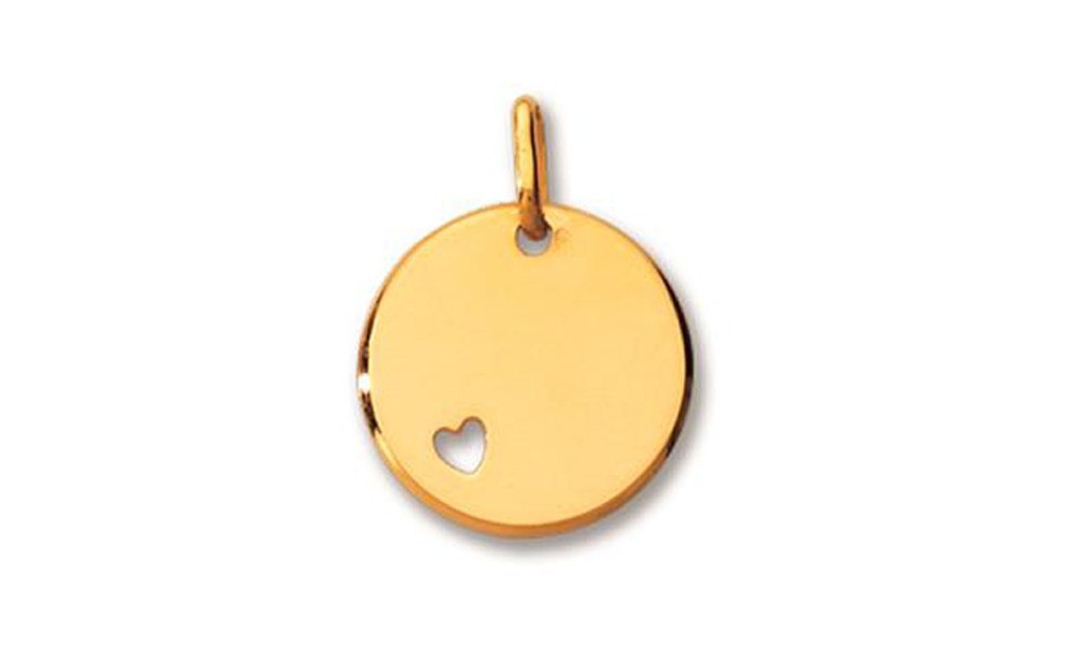 Très jolie médaille en OR Jaune de forme ronde avec un Coeur ajouré sur le bas du pendentif.