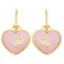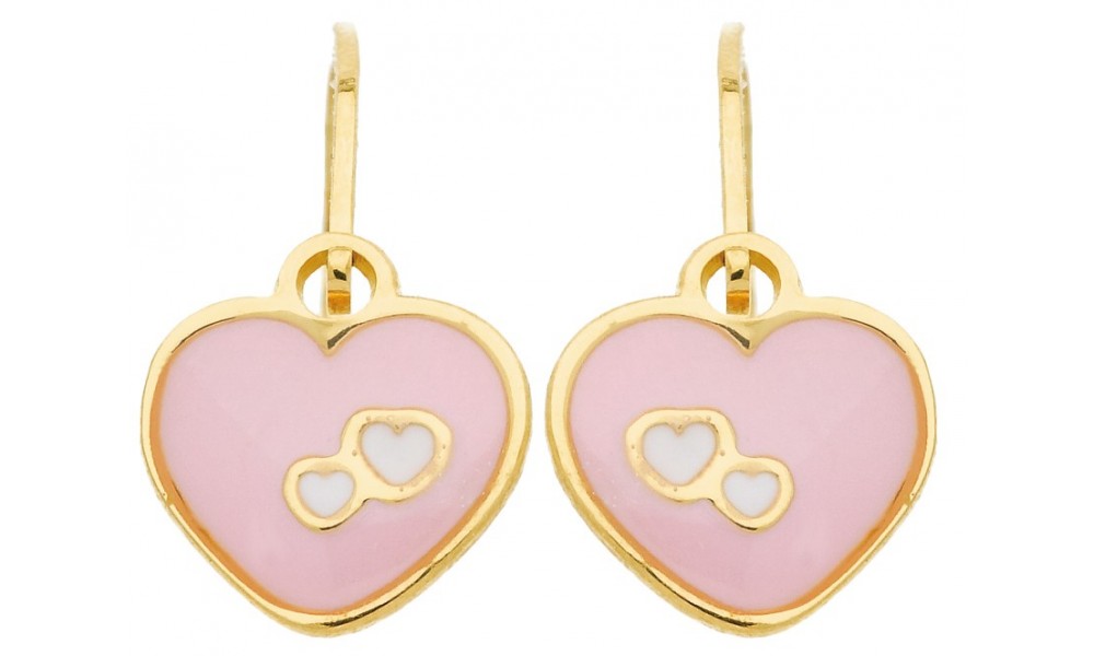 Très jolie paire de boucles d'oreilles en OR Jaune en forme de Coeur entièrement laqué Rose et Blanc. Le système de fermoir est un système à bascule.