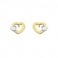 Paire de boucles d'oreilles bicolore. 1 coeur ajouré en OR Jaune et 1 cour plein en OR Blanc sur le dessus. Fermoir "poussette".