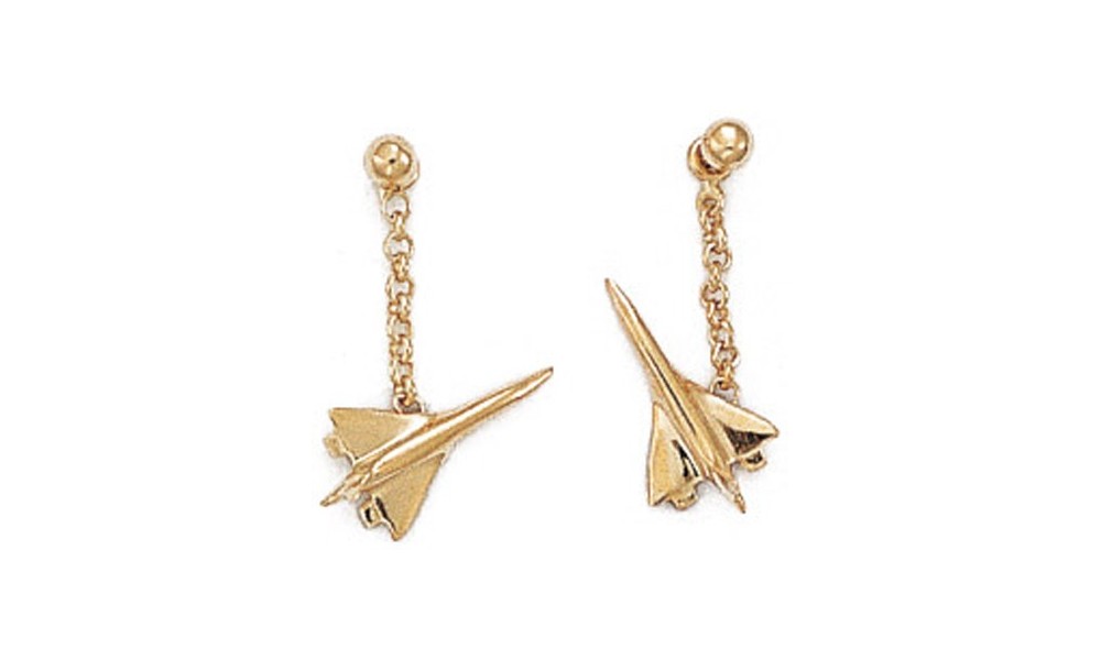 Boucles d'oreilles en OR du célèbre avion "Le Concorde".