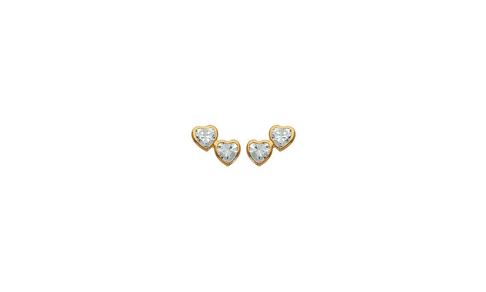 Paire de boucles d'oreilles motifs Coeurs en OR Jaune. 2 coeurs soudés avec Oxyde de Zirconium Turquoise serti clos.